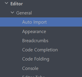 에디터(Editor)에서 제너럴(General)로 가면 제너럴 맨 위 상단에 오토 임포트(Auto Import)가 있습니다.